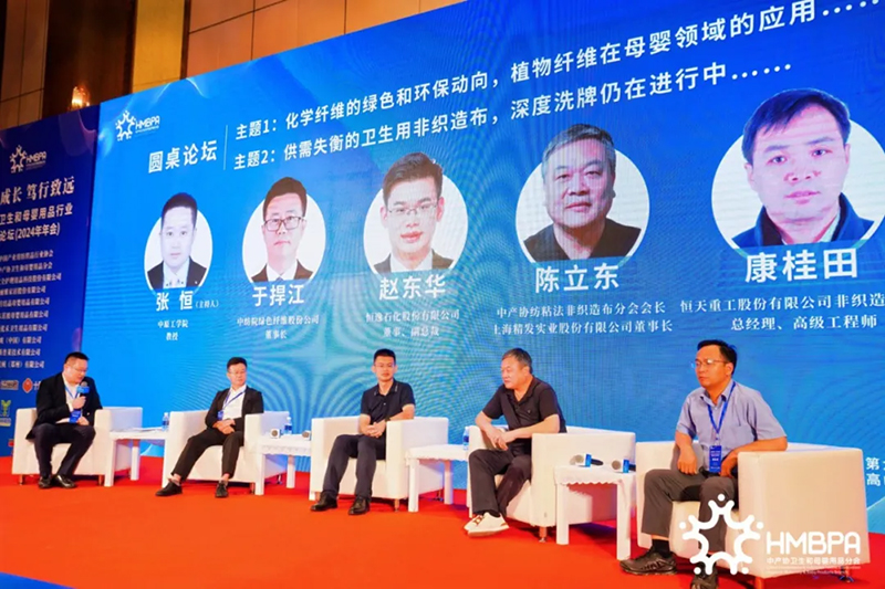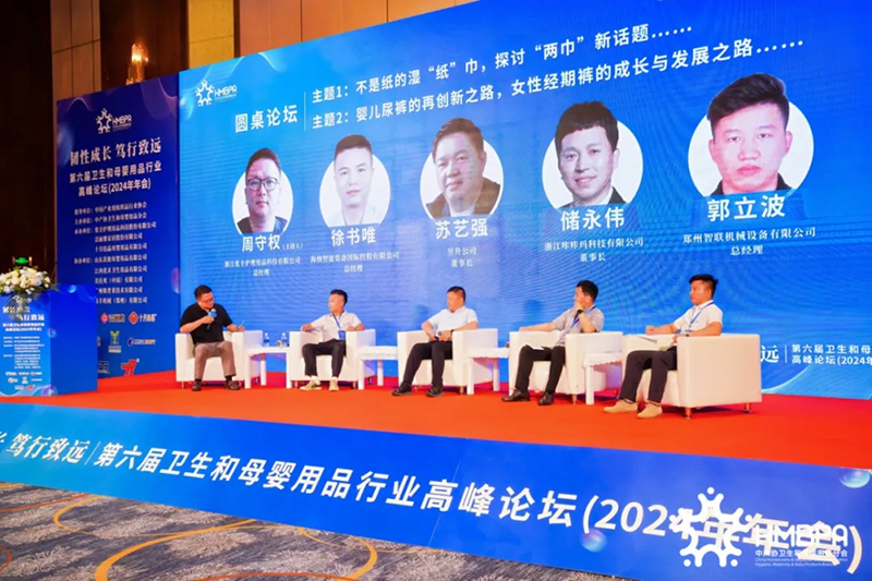 Zhou Shouquan, dyrektor generalny Zhejiang Youquan Nursing Products Technology Co., Ltd., Su Yiqiang, prezes Yusheng Company, Chu Yongwei, prezes Zhejiang Kakama Technology Co., Ltd., Xu Shuwei, dyrektor generalny Haina Intelligent Equipment International Holdings Co., Ltd. i Guo Libo, dyrektor generalny Zhengzhou Zhilian Machinery Equipment Co., Ltd., podzielili się swoimi poglądami i doświadczenia w zakresie najnowocześniejszych technologii i przyszłego trendu „dwa ręczniki i dwa spodnie” w produktach higienicznych oraz produktach dla matek i dzieci. Su Yiqiang powiedziała, że firma Yusheng przeszła proces rozwoju chińskich pieluszek dziecięcych od podstaw do doskonałości, od importu po lokalizację, a następnie eksport, i ma nadzieję, że liczba krajowych marek z najwyższej półki będzie w przyszłości nadal rosła; Firma Zhengzhou Zhilian Machinery osiągnęła dobre wyniki w zakresie sprzętu do chusteczek nawilżanych i inteligentnych rozwiązań ogólnych, a także osiągnęła dobre wyniki, a jej udział w rynku zagranicznym wzrastał w ciągu ostatnich dwóch lat; Chu Yongwei przedstawił historię rozwoju i przyszłe trendy rynkowe na rynku miękkich ręczników; Xu Shuwei powiedziała, że w ostatnich latach w sprzęcie majtek menstruacyjnych wprowadzono innowacje i dokonano przełomów, a produkty te poczyniły szybki postęp od kształtu majtek po wygodę materiału.