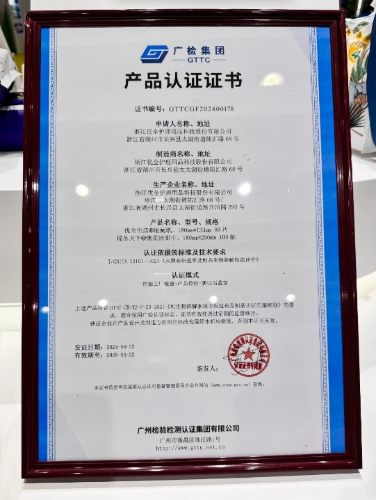 Pierwszego dnia CINTE24 w Shanghai New International Expo Center odbyła się trzecia partia certyfikowanych przedsiębiorstw „biodegradowalnych” oraz ceremonia wydania produktu. Kingsafe Group & Youquan Co., Ltd. aktywnie promuje zrównoważony rozwój branży, pełniąc funkcję wiceprzewodniczącego stowarzyszenia Green Development Innovation Alliance w branży włóknin, a opracowany i wprowadzony na rynek mokry papier toaletowy przeszedł „biodegradowalny „certyfikat, który był świadkiem eksploracji i innowacji w branży w celu promowania ekologicznego rozwoju.
